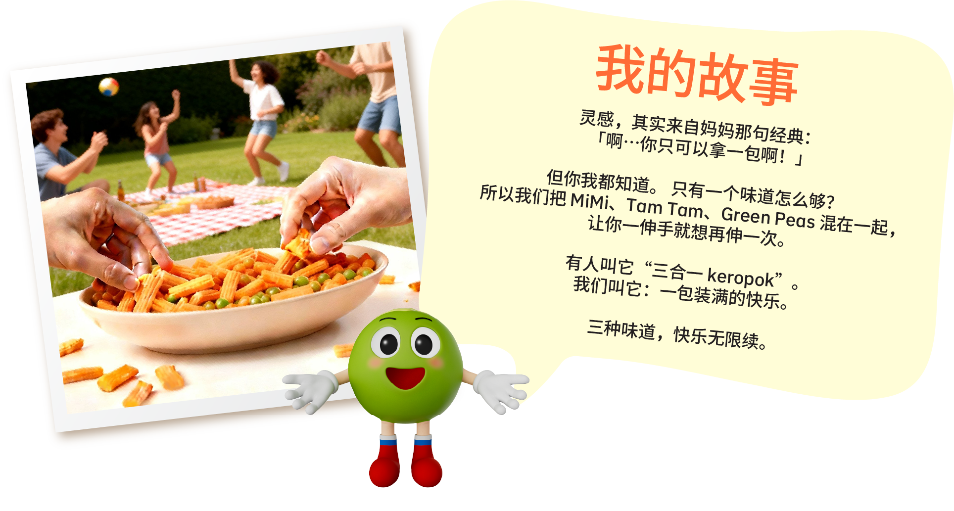 想吃 Mi-Mi,又想来点 TAM TAM,再想配 Green Peas?